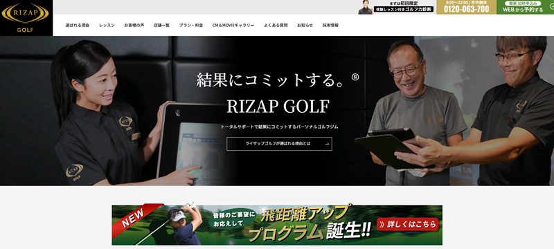 - その他:全額返金保証(30日間)、体験レッスン付きゴルフ力診断3,000円、レッスン動画の提供や中間カウンセリング、RIZAPボディメイク体験1回分付き。